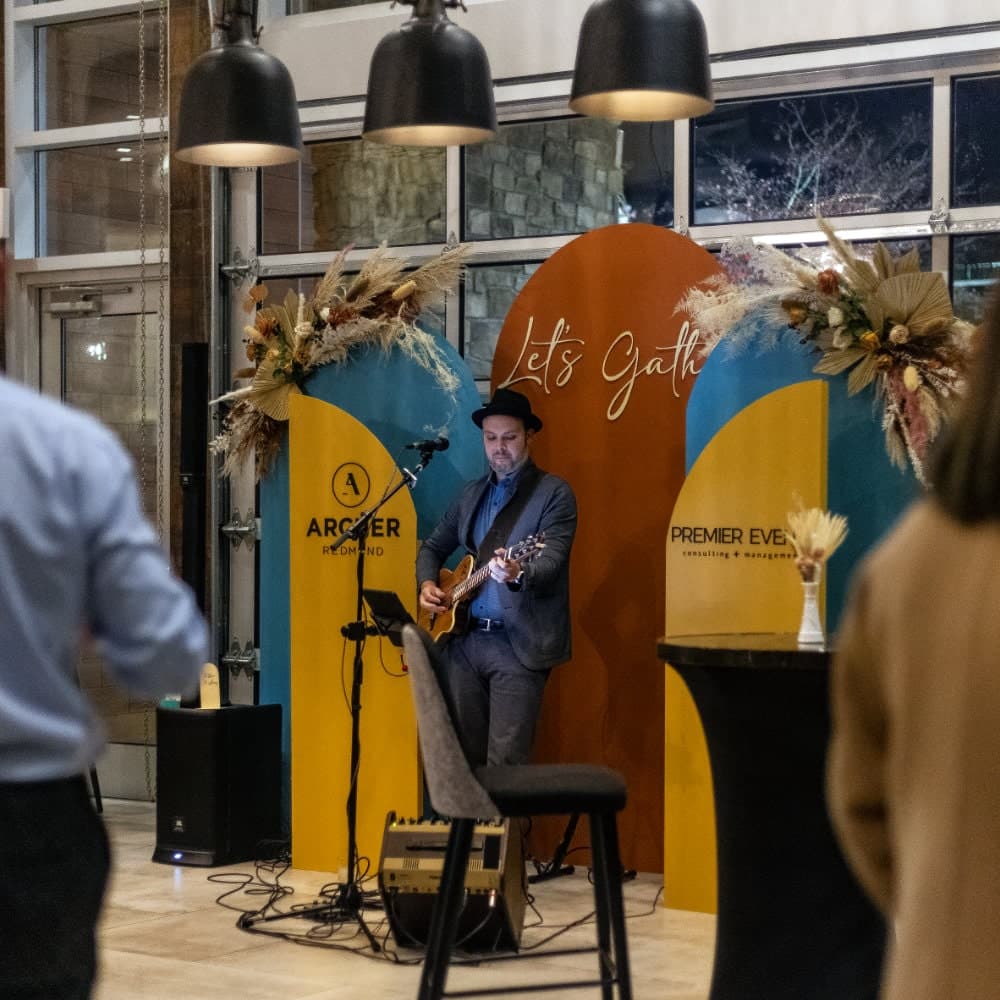 You can catch Robbie performing regularly at various venues in the Seattle area, often with no cover charge. During these performances, Robbie showcases his extensive repertoire of over 600 favorite songs, including original compositions. It's an excellent opportunity to gauge how Robbie's music can seamlessly complement your event. If you're planning to attend one of his performances, feel free to send us an email in advance, and Robbie will love to say “hello” in person.